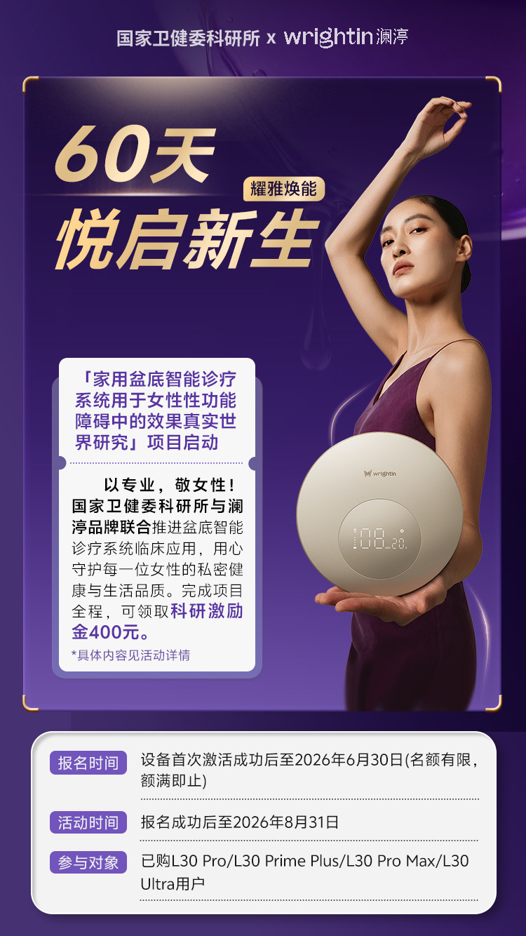 女性盆底健康是全民健康的重要基石。据国家科技图书文献中心研究统计,我国成年女性盆底功能障碍患病率高达40%,但产后筛查转化治疗比例仅为20%,居家康复渗透率更是只有17.1%。盆底功能障碍并非个体“缺陷”,而是许多育龄女性普遍面临的生理现象,盆底问题不仅带来身体不适,更严重影响日常活动与社交质量。身体的问题需要科学的认知与专业的解决方案—这正是澜渟深耕家用盆底健康的初心。