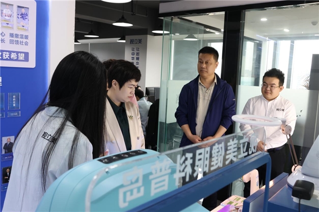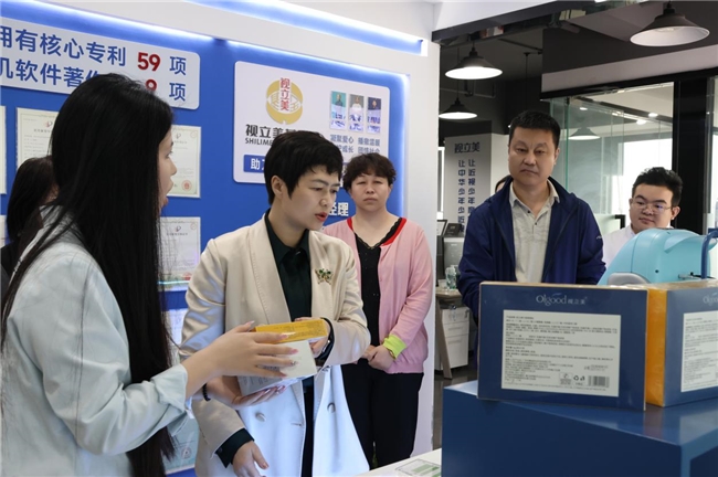 调研组实地参观视立美集团与基金会办公区域,详细了解集团发展历程、业务布局、行业荣誉,重点听取视立美集团首创的APA眼健康生态体系介绍,全面掌握基金会在青少年视力防控领域的技术布局、产品特色、公益服务体系建设等核心工作情况。