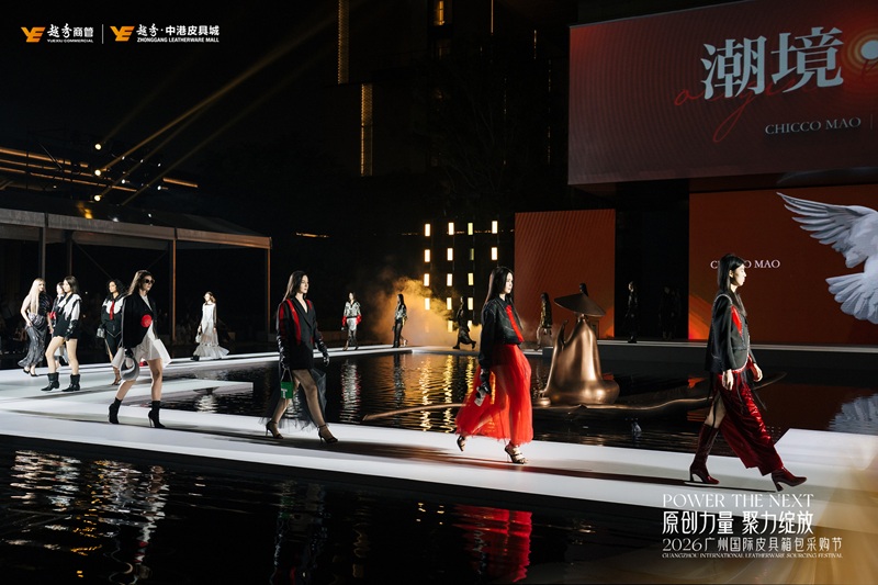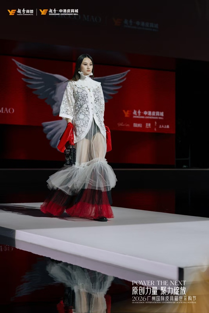 原创设计是产业升级与品牌出海的核心根基。活动现场,中国时装设计最高荣誉“金顶奖”设计师毛宝宝携CHICCOMAO品牌,联合中港五大原创品牌蒽薆、马林苏、秀蔻、上人上品、木兰左带来「潮境·绎新」原创新品大秀,融合东方美学与国际潮流,生动展现广州皮具从“制造”向“创造”的跨越,彰显中国原创国际竞争力,也是中港皮具城原创孵化成果的集中体现。