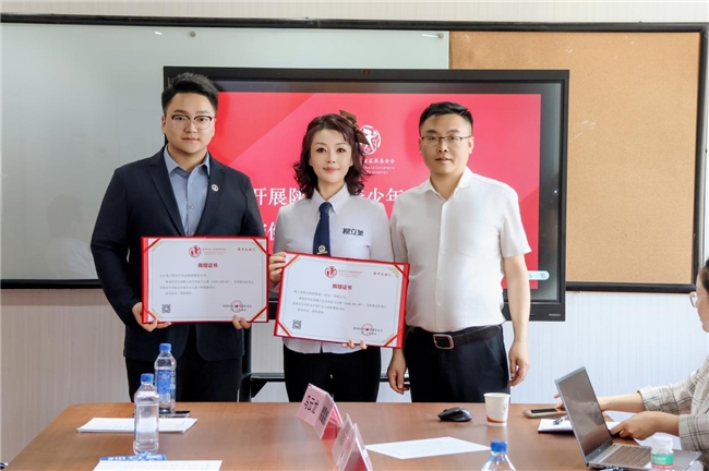 仪式现场,虹霓公益事业专项基金负责人刘枫为视立美集团颁发捐赠证书,陕西妇女儿童发展基金会秘书长刘克辉为企业授予“公益合作单位”牌匾,对企业热心公益、情系少年儿童的责任担当给予高度肯定。