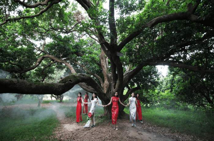 此次旗袍俪人游古道活动,将古村、古巷、荔枝和旗袍融合起来,摇曳的身姿,凝视的眼眸,时光仿佛定格在某一个瞬间,忘却了年轮的记忆,800年的沧海桑田,犹如转世一瞬间;行走在古驿道上,捧着相机在古村里转悠,品尝着同样历史久远的荔枝,仿佛自己穿越回去,体味着那时的日常、那时的炊烟、那时的美味人间。