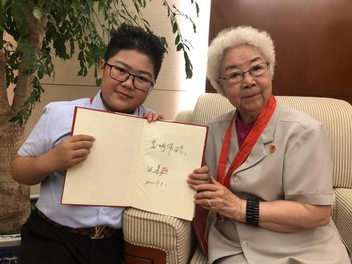 近日,著名的央视春晚小童星李明泽受邀与田华先生同台演出共颂经典。恰逢中国共产党成立100周年之际,由国图艺术中心举办特邀电影表演艺术家、大众电影百花奖终身成就奖获得者田华先生在国图艺术中心举办"致敬经典艺术里的红色记忆"公益讲座《永远做党的好女儿》。经过层层筛选主办单位国图艺术中心邀请央视春晚童星李明泽与田华先生和《我骄傲我是龙的传人》作者肖贵宁先生同台共同朗诵这首经典之作。