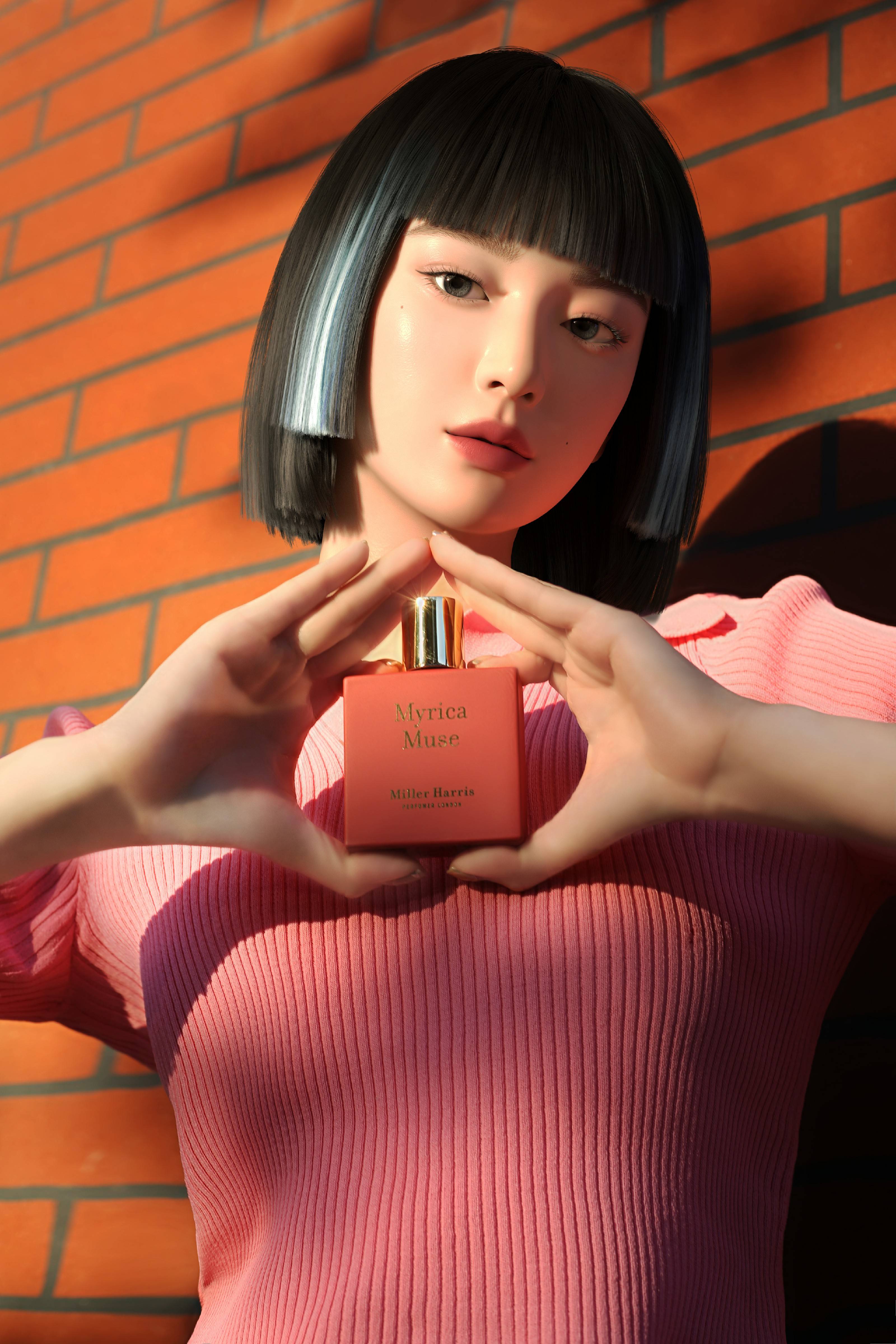 正是在这样的背景加持之下,才诞生了Miya与源自英国伦敦的高级香氛品牌米勒·海莉诗Miller Harris的合作,并成为该品牌首位元宇宙代言人,更是以其莓果缪斯的身份,空降上海外滩VIVO巨屏,并以虚拟现实技术与装置艺术相结合,为外滩制造了一个亮丽的风景地标。