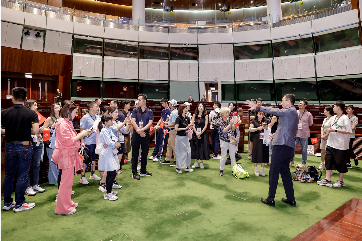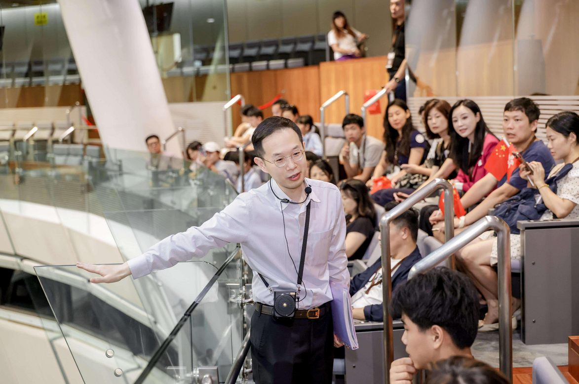 午后,一场深入而富有启迪的交流座谈活动悄然展开。专家与参与者们围坐一堂,就生涯规划与家国情怀两大主题展开了探讨。之后,参观队伍前往香港立法会参观,李镇强议员特别出席为团员讲解香港立法制度与积极解答团员疑惑,让团员近距离领略香港特别行政区的法治精神,了解了香港严谨的立法流程及相关工作。