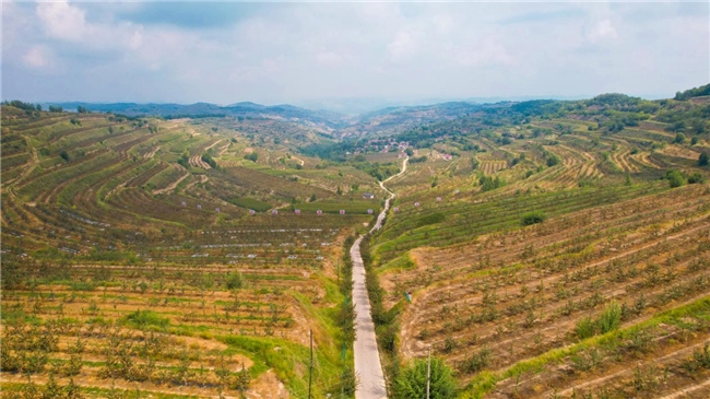 北纬35°苹果种植黄金地带,百万亩苹果园绵延起伏(司磊摄)
