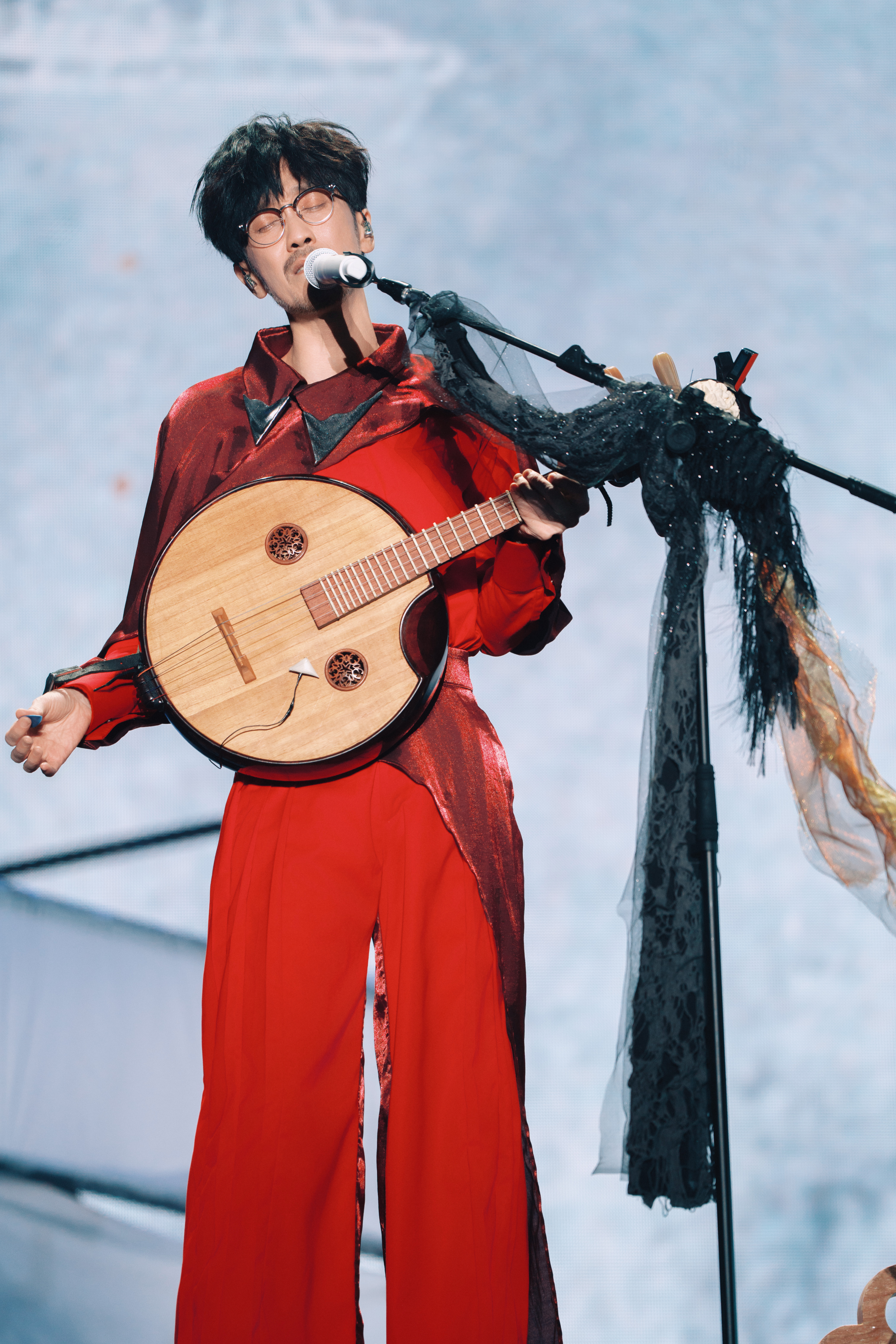 惊喜不止新歌首唱,当晚,周传雄别出心裁地选择以传统弹拨乐器——中阮,代替原本编曲中的吉他,带来耳目一新的听觉效果。现场小刚老师化身“民乐推广大使”,向大家介绍自己的巧思:“吉他更多是金属声,中式弹拨乐器更多是丝竹声,更温润悠扬,适合演绎这首歌的中式浪漫。” 当中阮音色代替吉他流淌而出,周传雄也仿佛一位穿越时光的吟游诗人,将千古名篇佳句,以焕然一新的方式娓娓叙述。