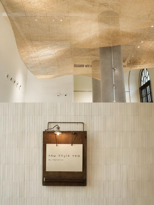 喜茶以广府饮茶场景中随处可见的竹编元素作为空间表达的载体,覆盖空间顶部的立体竹编装置历时240小时手工编织,竹编形成的纹理在空间内投射出的光影,如同将整间门店搬进树荫下,与门店外古树成荫的沙面大街形成呼应。门店中心的客座区则以竹塌为灵感原型,饮茶活动在空间内围绕竹塌展开,人群聚集起落,喜茶以竹作荫、以竹成席,在门店里打造出“无事闲坐,饮茶听风”的自在意境。融合建筑本身的空间结构,喜茶在广府饮茶文化的基础上渲染出属于喜茶的空间情绪,带来一处自在休闲的城市饮茶新去处。