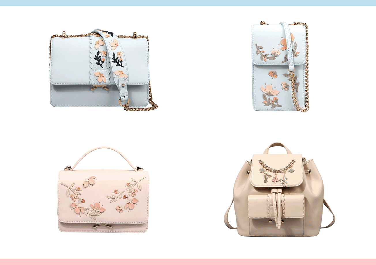 最近刘亦菲、杨洋主演的电影《三生三世十里桃花》即将上映,DISSONA的IP联名系列也随之漫游时尚界,精致桃花图案点缀包身设计,无处不在弥漫着一股桃花热。正所谓“人面桃花相映红”女子精巧的脸蛋是与桃花一样美丽。
