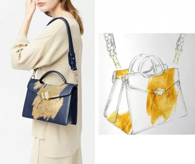 流星包除了基本款,还有特别款式的金箔包,它的图案是用金箔压烫上去的,看似很随意的涂抹却恰到好处,颇具艺术感的升华之笔。金箔压烫效果的流星包跟普通款的比,更具有中国古典艺术,比简洁款华贵、高级一些。优雅和简洁的包身,就好像一幅画布,展示着非凡的烫金工艺。