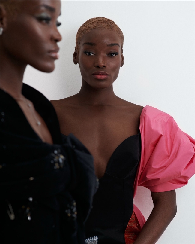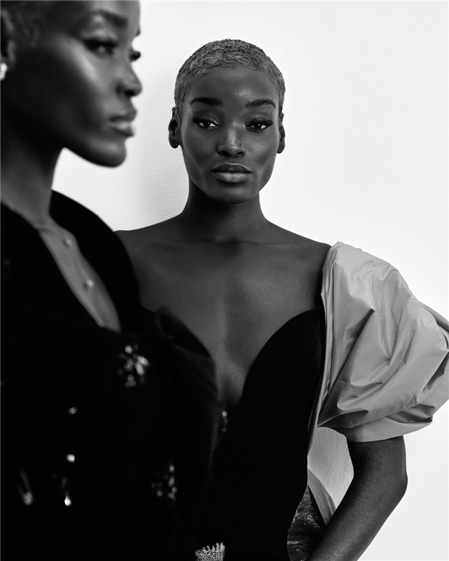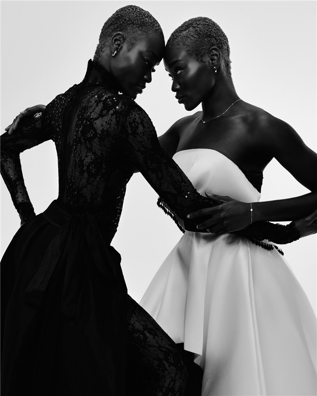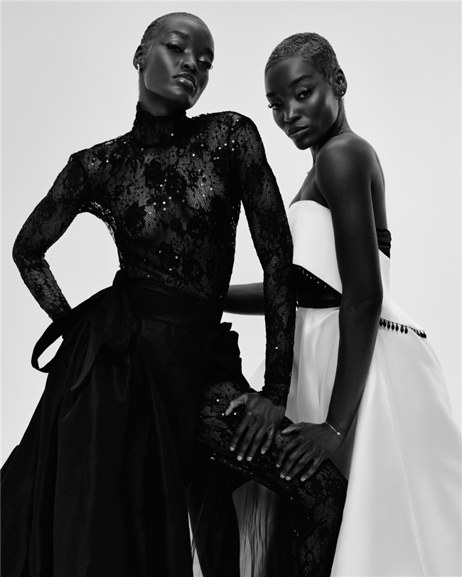 画面中心是来自 Blake Agency 的模特 Loreliwe Durimel 和 Sheryl Durimel,她们的存在赋予了整组 editorial 节奏感。她们之间的互动创造了一种超越单人肖像照的动态关系,通过姿态、体态与对比引入了对话感。最终呈现出的影像故事中,服装与配饰不仅仅是展示出来,更通过穿着的方式被赋予了生命力。
