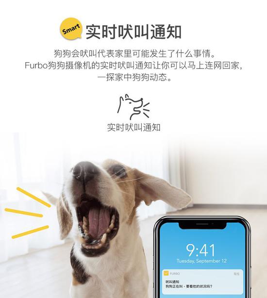 最重要的是,Furbo不是一款简单的摄像机,目前它拥有“业界唯一使用大数据与AI去侦测、判断狗狗行为的技术”。Furbo是“身体”,AI人工智能做“大脑”,当狗狗独自在家时,Furbo能够侦测到狗狗专属的特定行为(如吠叫、活动、狗狗自拍等等),甚至能够分辨画面中的移动物体是狗狗还是陌生人,及时通过手机App推送,提醒主人查看狗狗和家中正在发生的不同情况,从而真正成为宠物主人的得力助手。