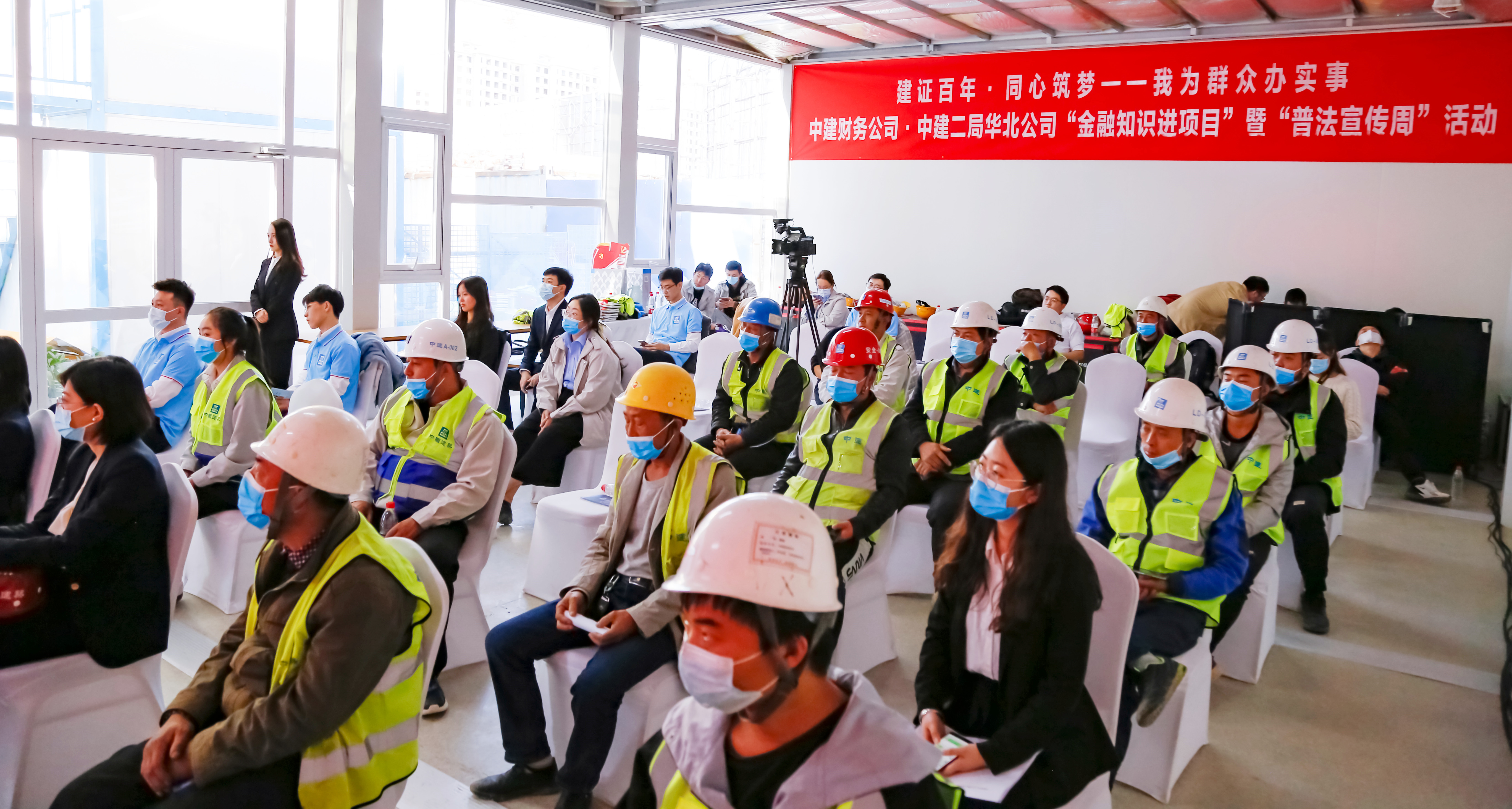 10月22日下午,由人民银行管营部指导,中建财务公司、中建二局华北公司主办,北京市盈科律师事务所、中建二局北京分公司支持的“金融知识进项目”暨“普法宣传周”活动在中建二局海淀永丰项目成功举办,相关负责人,工友代表共计60余人参与活动。