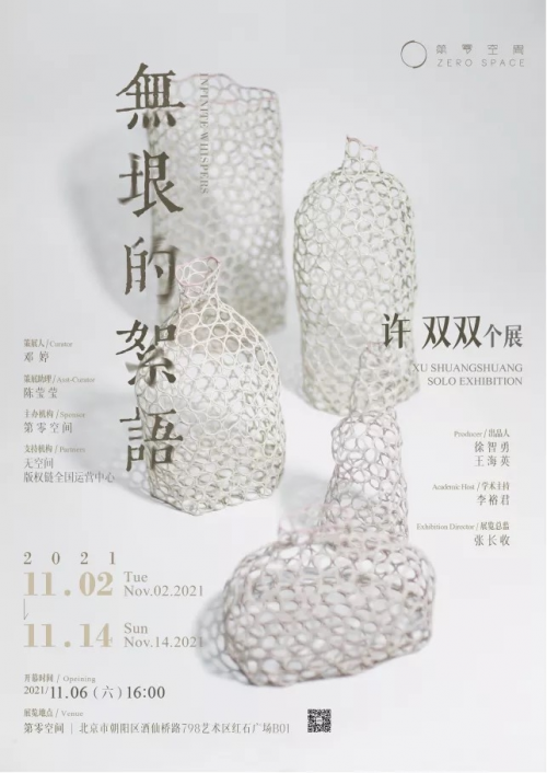 2021年11月6日下午4点,无垠的絮语-许双双个展在798艺术区第零空间开幕,本次展览展出了艺术家许双双于2018-2021年期间创作的30余件具有代表性的陶瓷作品, 以及影像记录和创作手稿等。这也是许双双于中央美术学院毕业后的首次个展。