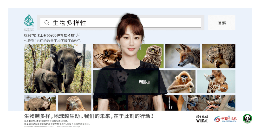 今天,野生救援(WildAid)与中国环境报、中国野生动物保护协会联合发布了《我们的未来在于此刻的行动》系列公益海报,为即将召开的联合国《生物多样性公约》缔约方大会第十五次会议(简称COP15)预热。郎朗、黄轩、杨紫和王一博四位野生救援公益大使为大会发声,呼吁公众积极参与保护生物多样性。 COP15将于2021年10月11日至15日和2022年上半年分两阶段在昆明召开,目标是确定“2020年后全球生物多样性框架”和各国及全球在未来的工作蓝图,以便在2030年稳定生物多样性丧失的趋势,并在其后二十年恢复自然生态系统,到2050年实现《生物多样性公约》中“与自然和谐相处”的总体愿景。“COP15及之后的十年是扭转全球生物多样性丧失的关键时期,需要国家行动和个人行为相结合共同努力。”野生救援北京代表处首席代表余冲表示:“我们希望《我们的未来在于此刻的行动》公益广告能让公众更多地了解、认识和体会生物多样性的价值,并让每个人找到自己参与保护的方式。” 生物多样性包括生态系统、物种和基因的多样性。不仅地球的稳定和健康依赖于丰富的生物多样性,人类的生存和发展也依赖于生物多样性所提供的生态支撑和生态服务,包括水、粮食、药品、衣服和能源等资源以及气候和水文调节等等。近几十年,气候变化对生物多样性产生重要影响。全球气候的快速变化已经超过了一些物种的适应能力。根据世界自然保护联盟(IUCN)的评估,气候变化正在影响19%被列入濒危物种红色名录(IUCN Red List of Threatened Species)的物种,增加了它们灭绝的可能性。中国环境报社长李瑞农表示:“保护生物多样性,即保护物种的遗传多样性,有助于帮助生物适应气候变化和抵御各样灾害,从而增加生态环境的稳定性,反过来也能减或缓解气候破坏、保障水和粮食安全乃至预防流行病。” 此外,土地和海洋使用的变化,生物的直接利用和污染等问题也是导致生物多样性丧失和生态系统变化的主要驱动因素。“减少对生物多样性的威胁,需要各个国家、社会组织和当地社区共同努力,恢复受损的淡水、海洋和陆地生态系统,将更多的陆地和海洋区域纳入保护;也需要每个人生活中的实际行动,例如拒绝非法、不可持续的野生物种采猎和贸易等。”中国野生动物保护协会秘书长武明录说。 《我们的未来在于此刻的行动》公益广告将从9月底开始陆续在北京、昆明、上海、天津、重庆、广州、深圳等城市的机场、高铁站、公交站等地投放。 在制作和投放中,《我们的未来在于此刻的行动》公益广告得到了灵智精实广告有限公司上海分公司、迪岸双赢传媒集团、德高中国、航美传媒集团、雅仕维传媒集团、江苏路铁文化传媒有限公司、外滩之窗、上海全璟数玻文化传媒有限公司、上海吉远网络信息有限公司、上海益航网络科技有限公司、北京梯影传媒科技有限公司、成都米茶传媒有限公司、深圳机场雅仕维传媒有限公司、杭州巴士传媒集团有限公司、广州德高空港广告有限公司、冠辰传媒(深圳)有限公司、上海钜景文化传媒有限公司、上海沃卡文化传播有限公司、广东IPTV、引力视讯地铁云窗、上海碧虎网络科技有限公司、重庆言信传媒有限公司、上海展荣文化传媒有限公司、上海易试互动文化传媒有限公司、摄影师李欧文、林根火、谢建国、周苑明、李成、甄军等企业和个人的公益支持。