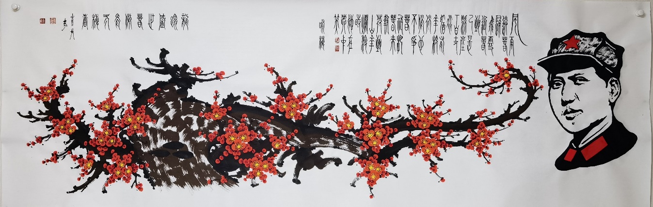 梅花是传统画题表现文化内涵和精神品格的重要载体,所以画梅既需要修文化,也需要修身心。修品有多高,梅题有多重!当代画坛,梅花作品常见范式的制作匠气,少见创作的风神。这是因为梅花题材与人格心修脱了勾,互不相干,画梅花就成了公式化的匠制,失去了因心绘梅,画以抒情的创作格调。观赏肖忠昌先生的梅花作品,不但有令人眼前一亮的悦目观,还会有让人持久为之陶醉的心动感。他的梅花全面脱离“范式”的束缚,走进了心纵创意的最高境界!