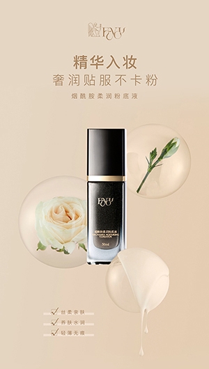 第一步:做好皮肤打底工作后,使用FYOU烟酰胺柔润粉底液。