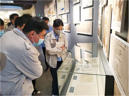 在一件件珍贵的革命文物前,同志们不时驻足凝望,用注目礼深切地向革命先辈致以最崇高的敬意。