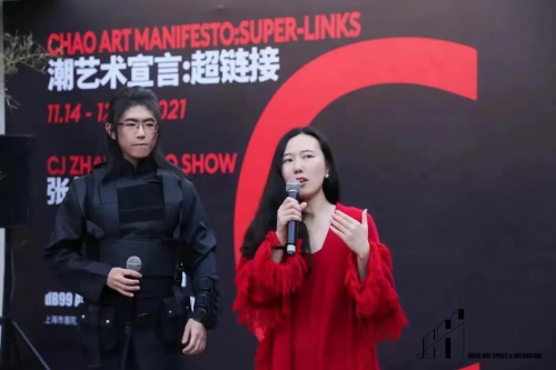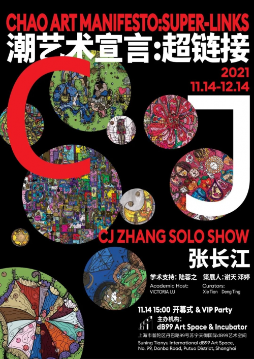 2021年11月14日下午3点,《潮艺术宣言: 超链接》发布会暨张长江个展开幕式于上海dB99艺术空间呈现,本次展览由dB99 Art Space & Incubator主办,著名策展人、艺评家陆蓉之担任学术支持,由青年新锐策展人谢天和邓婷联合策划。发布会与开幕式现场视频连线了宝藏萌奶奶陆蓉之进行线上参与,主创人员与艺术家张长江现场共同签署并对外发布了潮艺术宣言。