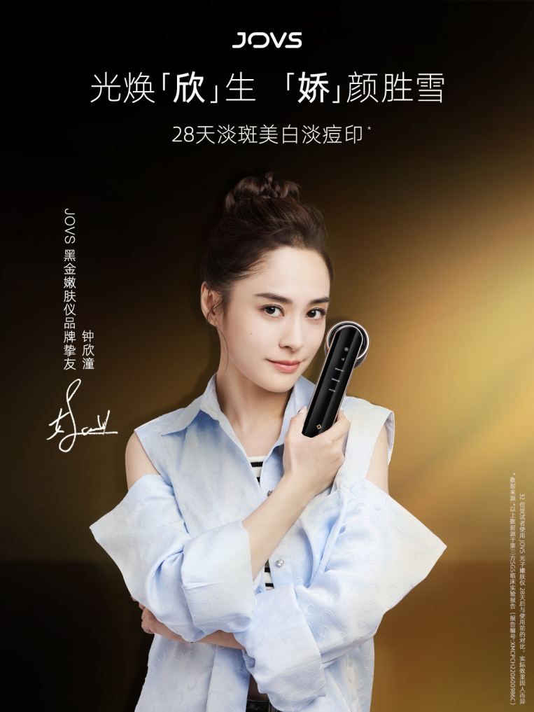 阿娇近期与全球时尚个护品牌JOVS一起探索嫩白肌肤、素颜发光的独家秘密,成为JOVS黑金嫩肤仪品牌挚友,致力于让每一位用户都能通过高效的家用化的医美级护理,收获由内而外的透亮肌肤,从而光焕“欣”生,“娇”颜胜雪。