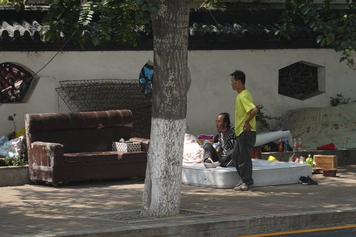 流浪汉露宿的地方离王天抒家不远。最初,王天抒没打扰他们,要观看并记录他们的真实生活,必须暗中观察,保持距离。流浪汉的露宿点成了王天抒每天必到的打卡地,时间长了就发现流浪汉的酸甜苦辣像一幕幕精神戏剧:有时他们会改善条件,添置床垫和沙发,可没用几天就因占道被清得一无所有;有时突然下起了大雨,他们地紧挨在一起蹲在对面楼的楼角下,笑看被浇的路人;有时突然来几个便衣,拷走了混迹在他们酒局上的陌生人,只剩下瞠目结舌的讨论;有时其中一流浪汉病倒了,另一个会很无奈又体贴入微地照顾;有时他们会为一点小事而争吵,但又瞬间和好;夕阳将落,他们会和途经于此的一名高高坐在废品收购车上的小女孩互相挥手致意,那是他们每一天中比喝酒还兴奋的时刻……酒和流浪汉形影不离,后来王天抒也拿着啤酒凑过去与流浪汉们小酌,和他们混的相当熟,几乎到了无话不说的程度。却因为新冠疫情防控、创建卫生城市,城管把他们清理了,不知道流浪到什么地方去了。只留下一张张图片成为念想。