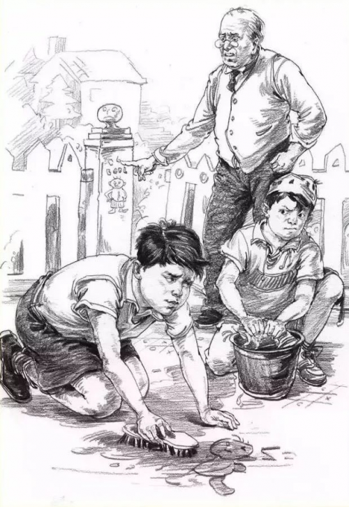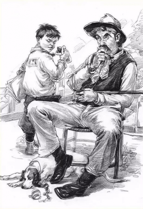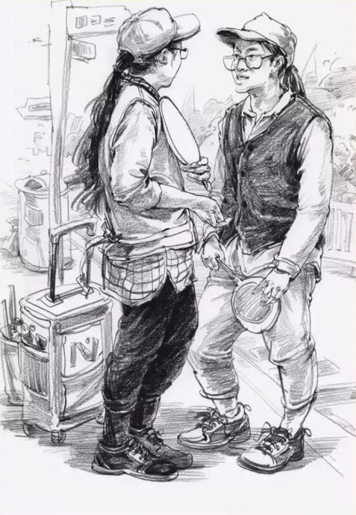 四.道具 场景速写中的道具描写,不仅起到点缀画面的作用,还能起到说明的作用。场景中的道具包括各种工具、家具陈设、人物用品、前景杂物等等。道具可以说明人物的身份、环境、时间、地点,还可以填补画面空白,连接、建立人物之间的关系,调节画面结构上主与次、前与后、轻与重的节奏变化。说明性的道具描写要完整、细致,点缀性的道具可以画得比较轻松随意,但是要控制道具的刻画比重,不要超过主题的分量。