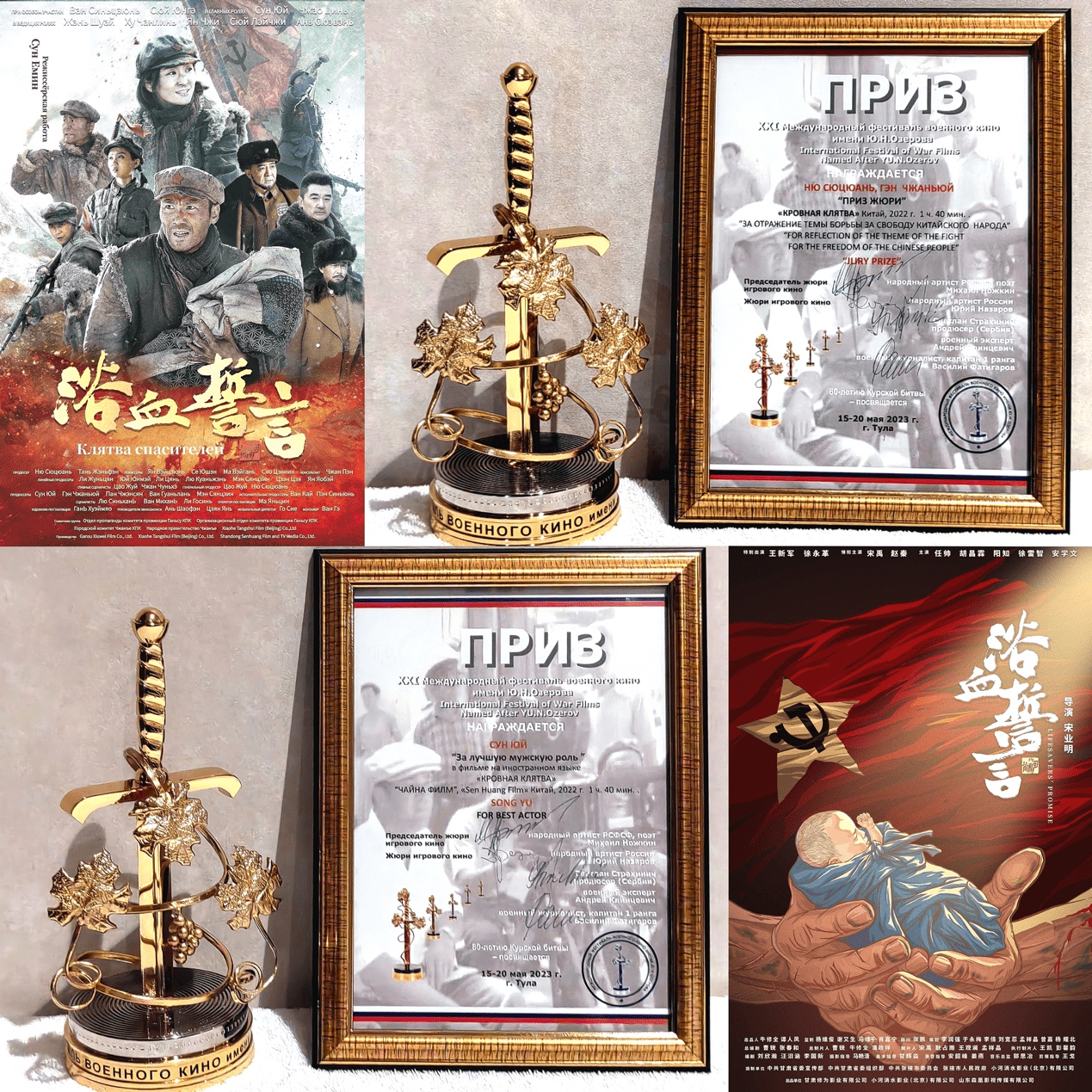 《浴血誓言》由原八一电影制片厂国家一级导演宋业明执导、甘肃著名作家曹锐任总编剧、青年制片人牛修全任总出品人,展现了1936年底中国工农红军西路军在河西走廊与敌人浴血奋战的英雄事迹。主演宋禹曾是一名军人,此前他拍摄了数十部不同类型的军事题材影视作品。在这次的获奖感言中,他特别感谢了这部电影演职人员们的坚守与辛勤付出,同时他也真诚地表达希望更多观众可以进一步了解中国的军事电影,特别是中国的历史和文化,期待中俄两国人民在各个领域都有更好地交流合作与发展。