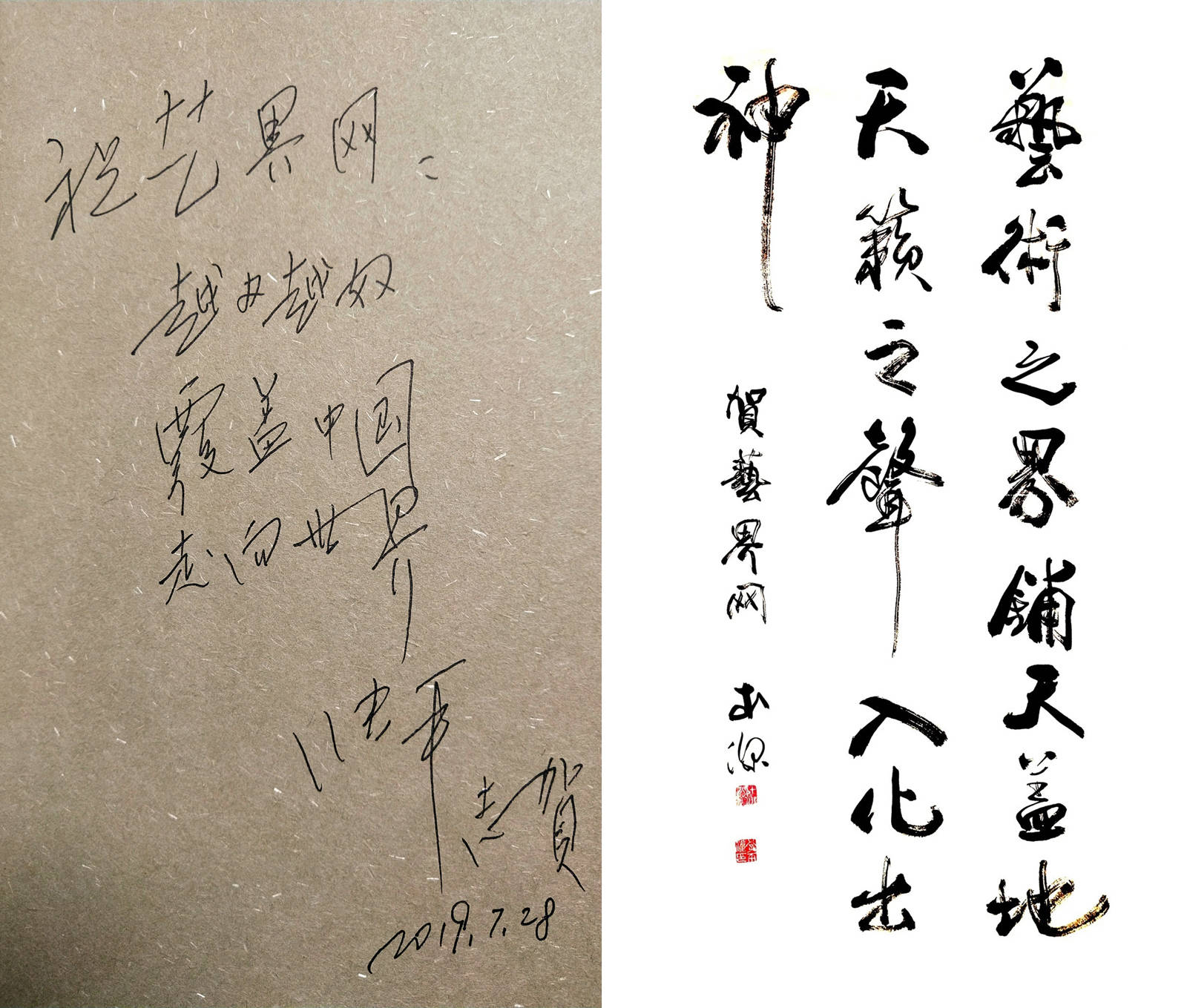 美国硅谷美术馆馆长段昭南,比利时世界文化艺术交流中心执行主席陆惟华,世界海外华人书法家协会联合主席兼主席团召集人阮渊椿等众多海外艺术家为艺界网题词。