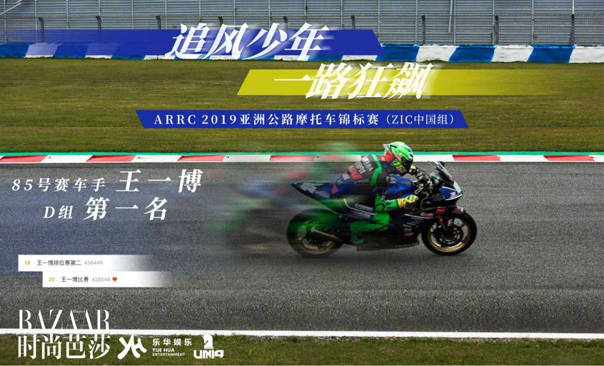 经过多次赛道训练,2019年,王一博加入万里达雅马哈车队,成为一名职业赛车手 。 同年8月11日,王一博参加珠海ARRC中ZIC摩托车赛,获得D组(新手组)小组双回合冠军,混组(全场)亚军。ARRC官网新闻到油管和官方脸书均对王一博的参赛历程有详细记录,并称其夺冠载入ARRC史册。