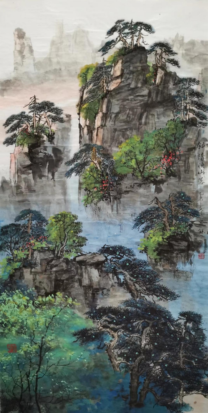 其作品注重写实,个人风格鲜明,中西兼容、格调大气,追求以自然美为大美的艺术理念。