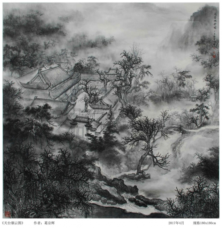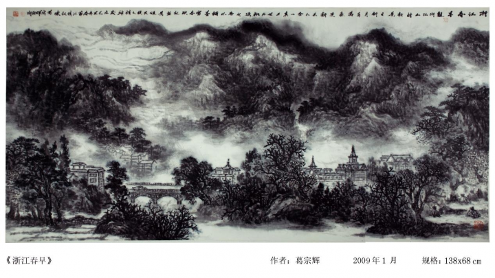 从作品来看,葛宗辉先生的山水画作无疑是十分经典的,究其原因,一方面是创作理念,将笔墨功底深深根植在了传统文人画的主脉之上,以山水为抒情,以作品蕴胸怀。另一方面,则就是心随笔运,取象不惑的写意构思,使种种山水真迹皆可具于胸中,再到笔着纸时直追出心中之画,此实乃外师造化而又中得于心源也!故由此绘作一幅,即是可以陶冶情操的大家之作,山水形质,雅俗共赏!