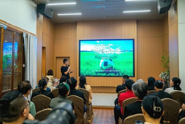 活动现场,中国电影基金会·中国电影文化传承专项基金总监祁国强先生、副总监庄英女士、公益推广部执行部长岳智宇女士、法律顾问谭安然女士、《绿茵场的少年》的出品人兼制片人蔡少珊女士、制片人赵鹏先生、剧组工作人员、影视企业家及社会各界知名人士百余人莅临现场共同见证电影《我和班主任的故事》校园播放权捐赠暨院线电影《绿茵场的少年》项目启动。