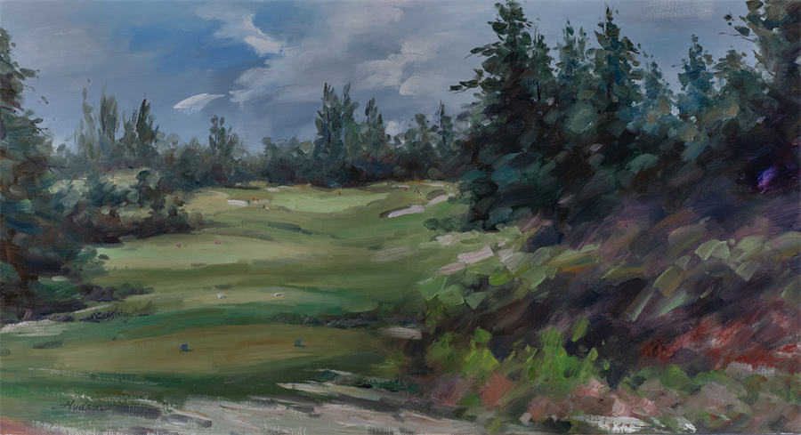 “Chinese artist Hudson Shaoxia Zhang has been a golf fan for over three decades, alongside his influential role as a professor of art history, and over the last six years has dedicated himself to capturing the landscapes of golf courses worldwide through drawing and painting,blending his twin passions of golf and art to create a distinctive and unparalleled body of work”。