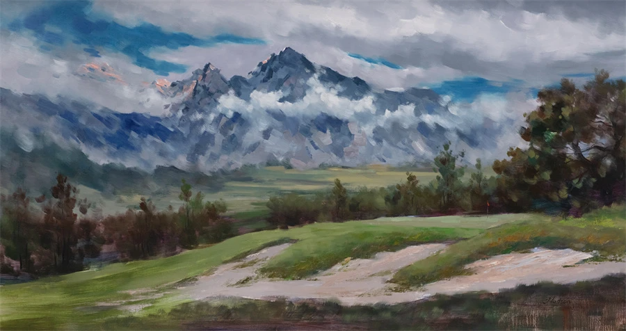 油画是世界性的艺术语言,作为一位华裔艺术家,张少侠教授深悟其中原理和技巧,并发挥出充分的艺术个性和特色。尤其是他选择以高尔夫球场风景作为创作主体,更使其作品风格独具,意义非凡。高尔夫这一悠久且现代的体育运动,体现了人类与大自然的完美共处和沟通。表面上是通过这一主题入画,实际上是不同球场的风景表现与自然、社会和艺术家内心的互动,这一层层含义被艺术家巧妙地寓于图像背后。这将传统风景油画与高尔夫球运动文化相耦合,使两者在新语境、新领域中焕发生机,达到各美其美、美美与共的效果。