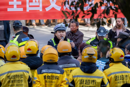 现场,民警面对面与辖区美团骑手、快递配送、送水送气等务工人员群体开展交通安全宣讲,号召大家严格遵守交通安全法律法规,增强职业道德意识,始终绷紧交通安全弦,积极参与文明交通行动,共同打造安全文明的道路交通秩序。