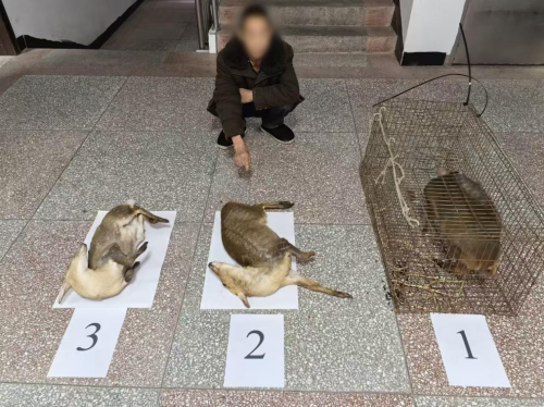近日,云阳县一男子非法狩猎野生保护动物,并企图圈养繁殖牟利。县局双土派出所民警接到群众举报后,火速赶往现场对其进行了处置,从其家中搜出8个捕兽夹,解救出3只疑似黄麂的野生动物。