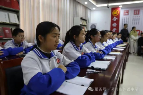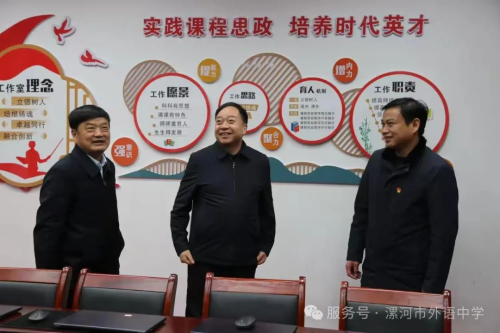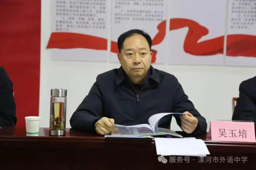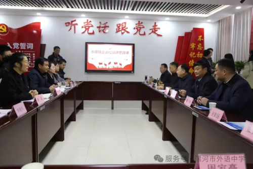 为发挥思政课在课程体系中的政治引领和价值引领作用,引导学生扣好人生第一粒扣子,近日,漯河市副市长吴玉培到漯河市外语中学,调研教育高质量发展情况,并以《立大志 明大德 争做新时代大先生和民族复兴栋梁之材》为题,为师生讲授了一堂生动的思政课。漯河市人民政府研究发展中心主任赵蕴哲,市教育局党组书记、局长王海东,市城市管理局党组书记、局长郭海平,市教育局党组成员、副局长聂广桥陪同调研。该校中层以上领导班子、各教研组长、思政课教师及学生代表共计四十余人到场聆听。