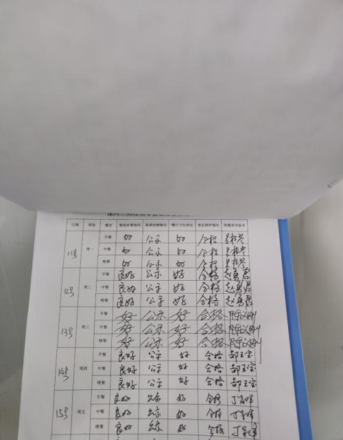 完善制度,落实岗位责任。该校以保障学生健康成长为核心,遵循公开透明、及时反馈、责任到人的原则,结合学校实际情况,对《漯河市第二高级中学陪餐制度》进行完善;成立陪餐工作领导小组,党委书记赵勇君、校长陈义刚为组长,全面负责陪餐制度的领导工作,同时,学校副校长为副组长,各处室主任、年级主任、班主任等相关人员为成员。