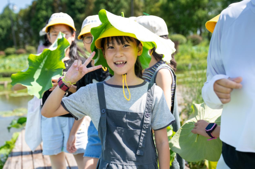 研学实践活动更是精彩纷呈,充分结合夏季的自然与人文资源。在水八仙生态园,近距离观察夏季各类植物的生长形态、生态特征以及它们在生态系统中的重要作用。孩子们亲手触摸荷叶的清凉、嗅闻荷花的芬芳,深刻感受理解了杨万里笔下“接天莲叶无穷碧,映日荷花别样红”的神奇与美妙。对于喜欢绘画的孩子们,一池荷花便是他们最好的礼物!大家在自己绘画的荷花旁笔下生花,写下了自己眼中的荷花诗词。在“荷花糕点DIY”环节,孩子们和家长们一起制作“荷花、荷叶、莲藕”在互动中让阅读变得更加生动有趣,如同夏日的阳光般炽热而充满活力。