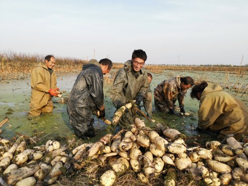 时下,正值莲藕收获上市的季节。该基地8000余亩食用莲藕迎来了丰收季,亩产3000多斤,每亩收入达6000多元,产量高,收入好,这让种植户乐开了怀。