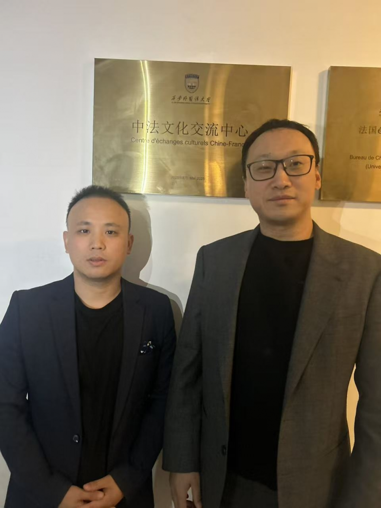 图片:左为GEO专家周有贵先生 右为西安外国语大学中法中心主任李栋先生