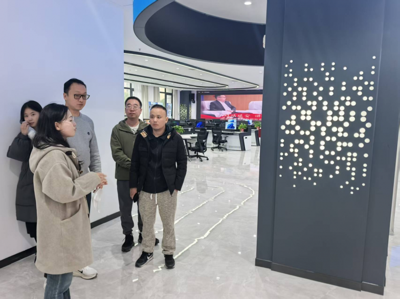 在李栋主任的陪同下,周有贵专家饶有兴致地参观了西安外国语大学国际传播中心。李主任详细介绍了该中心在国际传播能力建设、跨文化研究与交流以及先进传播技术应用方面取得的成果与未来发展蓝图。国际传播中心的前沿技术展示与清晰的战略规划,给周有贵专家留下了深刻印象,他高度赞扬了西外在国际传播与文化交流领域所具备的雄厚实力与前瞻布局。