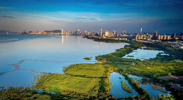 夕阳为深圳湾畔的红树林生态公园轻轻镀上一层暖金色。远处的红树林在微风中摇曳,成群的候鸟掠过水面;游人悠然漫步,林间虫鸣交织,让这片绿洲成为繁华都市中一处难得的静谧角落。