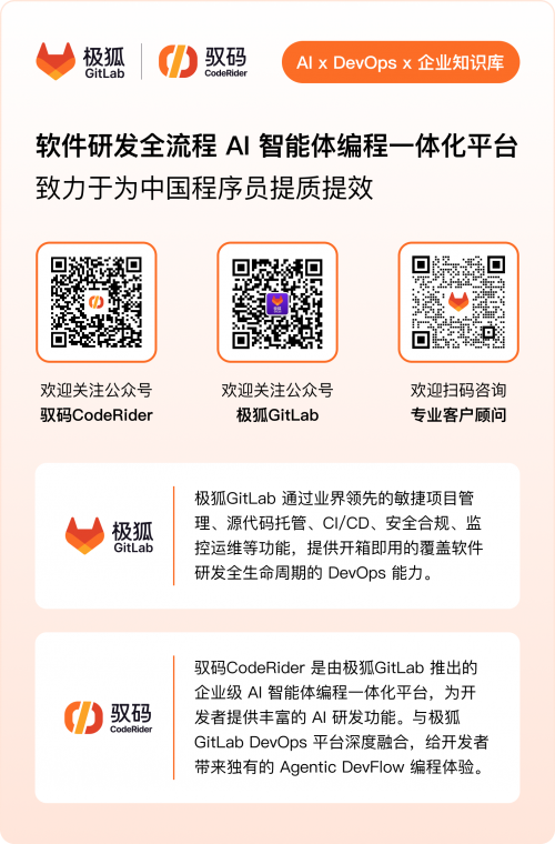 极狐驭码作为全流程 AI DevOps 与 AI Coding 平台,提供完整研发流程与合规部署方案,深度集成驭码 CodeRider,将 AI 能力嵌入研发全流程,构建 “DevOps + AI” 闭环。二者协同打造覆盖软件研发全流程的的智能化研发体系,以 AI Coding、AI DevOps、AI Engine 三大核心模块形成智能闭环,助力企业迈向 AI 原生研发新范式。