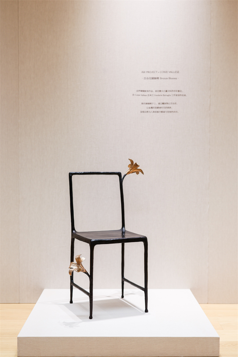 演员王珞丹的亮相成为庆典焦点。她身穿AW PROJECT 2026春季系列以优雅笃定之姿穿梭于主题展中,在展区内被一件铜铸椅作品所吸引,金属的坚硬与花的柔软形成矛盾美学,恰如她对角色真实的理解,演员需通过理解矛盾贴近角色,而穿衣者也需在衣物承载下,达成身体感知与自我意志的平衡,恰如爱唯二十年来坚守的“柔软与坚韧共生”哲思。