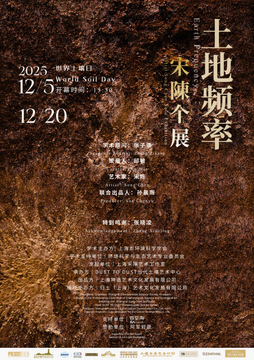 2025年12月5日至12月20日,DUST TO DUST艺术中心推出土壤媒介艺术家宋陈的个展项目《土地频率》。此次展览是宋陈迄今为止大规模的研究性个展,围绕“自然土壤”、“地域文化”、“人类行为”等关键词,从大量作品中,遴选了其不同时期的代表作,共逾60件作品,《拂尘》、《土地频率》、《接地》三大展区,梳理并重现了她二十多年艺术生涯。