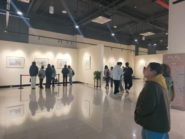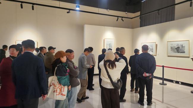 观众或驻足细品画中笔墨的细腻肌理,或低声交流对艺术手法与家国情怀的感悟。不少美术爱好者举起手机记录精彩画面,并与同行探讨创作技巧,浓厚的艺术氛围在展厅内悄然流淌。