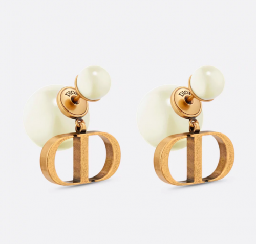 (图注:DIOR Tribales 耳环单品照,特写珍珠的温润光泽和复古金色“CD”标志的精致细节)