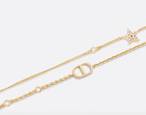 如果说耳环是私语,那么项链则是贴心的宣言。这款双链条项链的设计,蕴含了DIior宇宙中两个最经典的符号:“CD”徽记与“星星”。