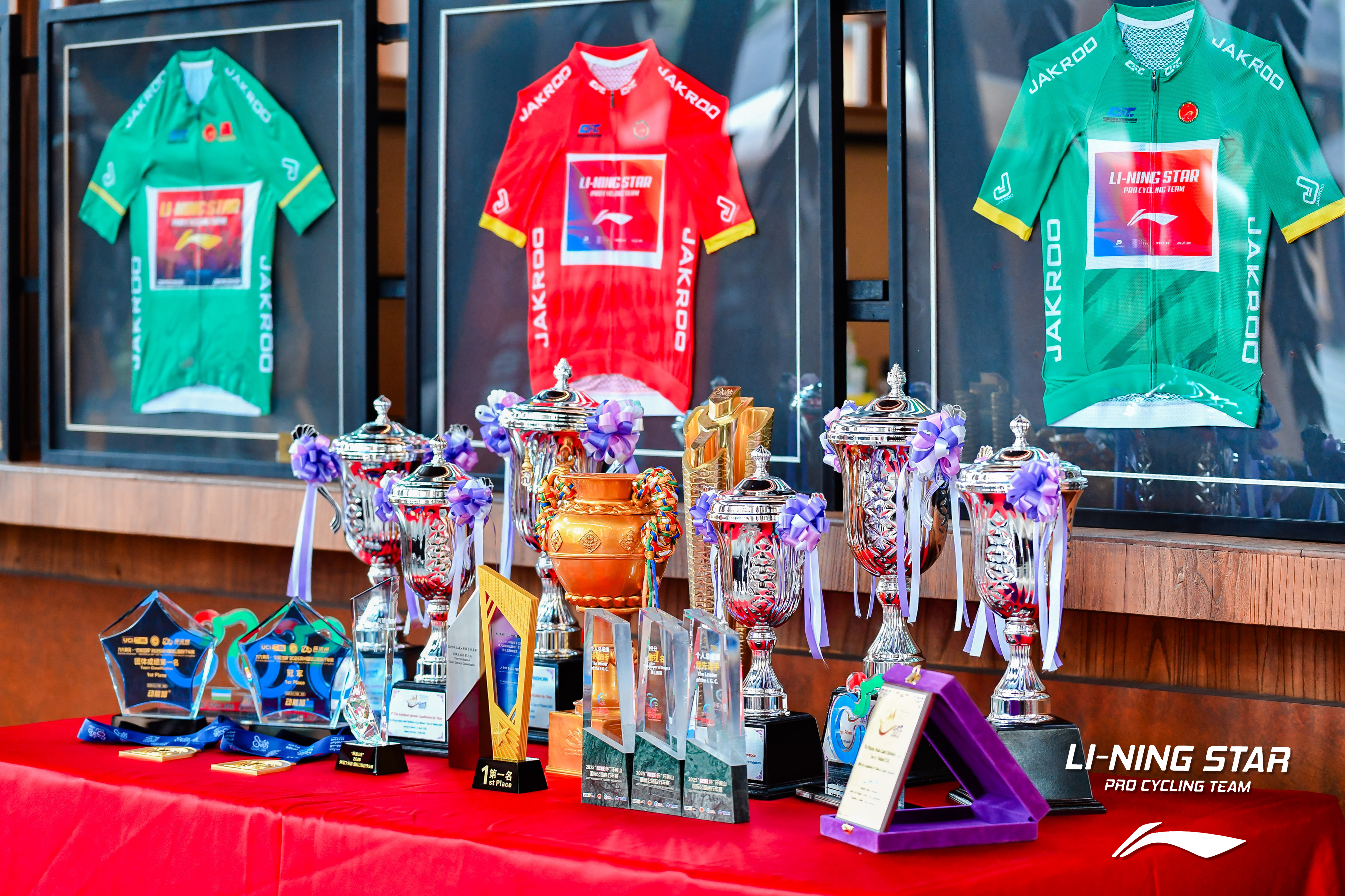 2025赛季,李宁之星洲际自行车队在UCI赛场上取得了突破性进展。车队共参加了包括环沙迦赛、环泰国赛、环岛赛、环青海湖赛等在内的多场UCI赛事,斩获UCI积分洲际车队中国第一、亚洲第二、世界第三的亮眼战绩。全年拿下多站赛段冠军的Alexander SALBY捧走车队“年度之星”大奖。