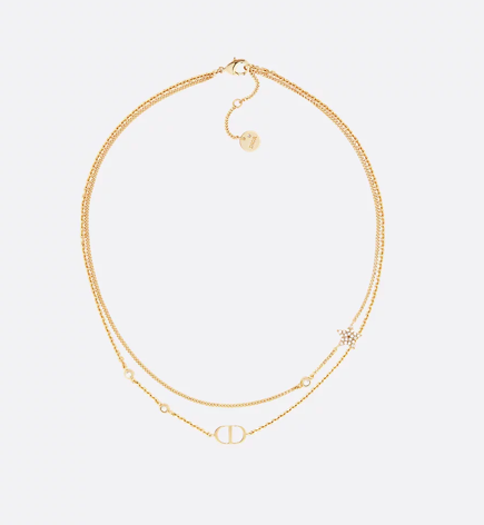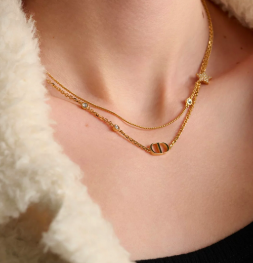 如果你希望准备更充分,可以搭配 Petit CD 双链条项链(N1155PMTCY_D301)作为组合策略。这不是鼓励你一次送出两件,而是提供一个“Plan B”的智慧。这款项链的精致之处在于其叠搭理念:一条饰以CD标志,另一条饰以密镶仿水晶的星星,致敬迪奥先生钟爱的幸运符号。它本身就是一件充满故事感的单品。